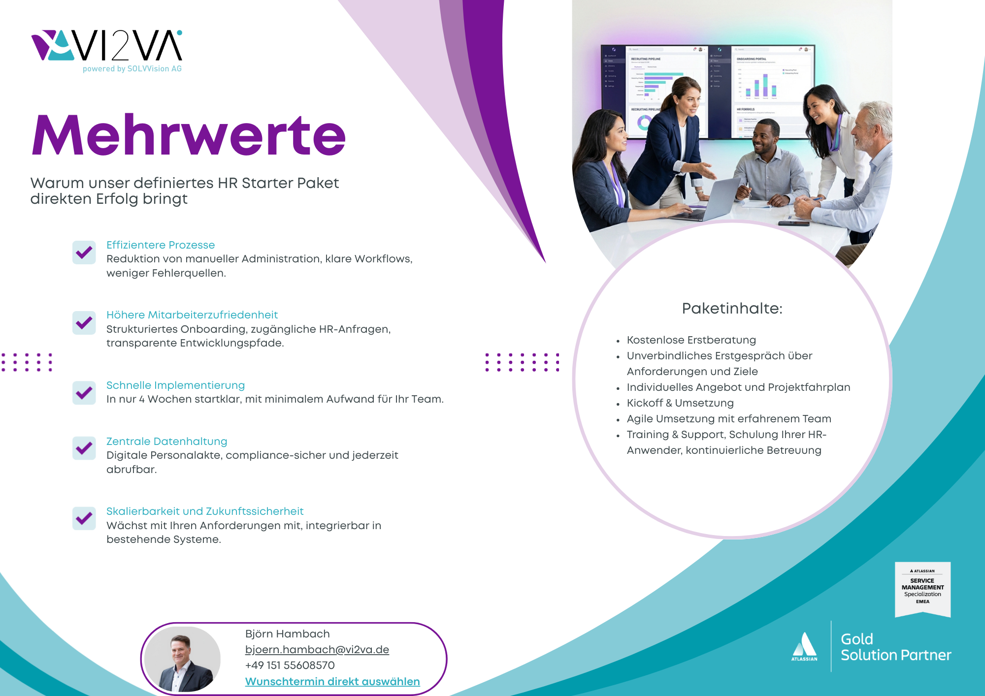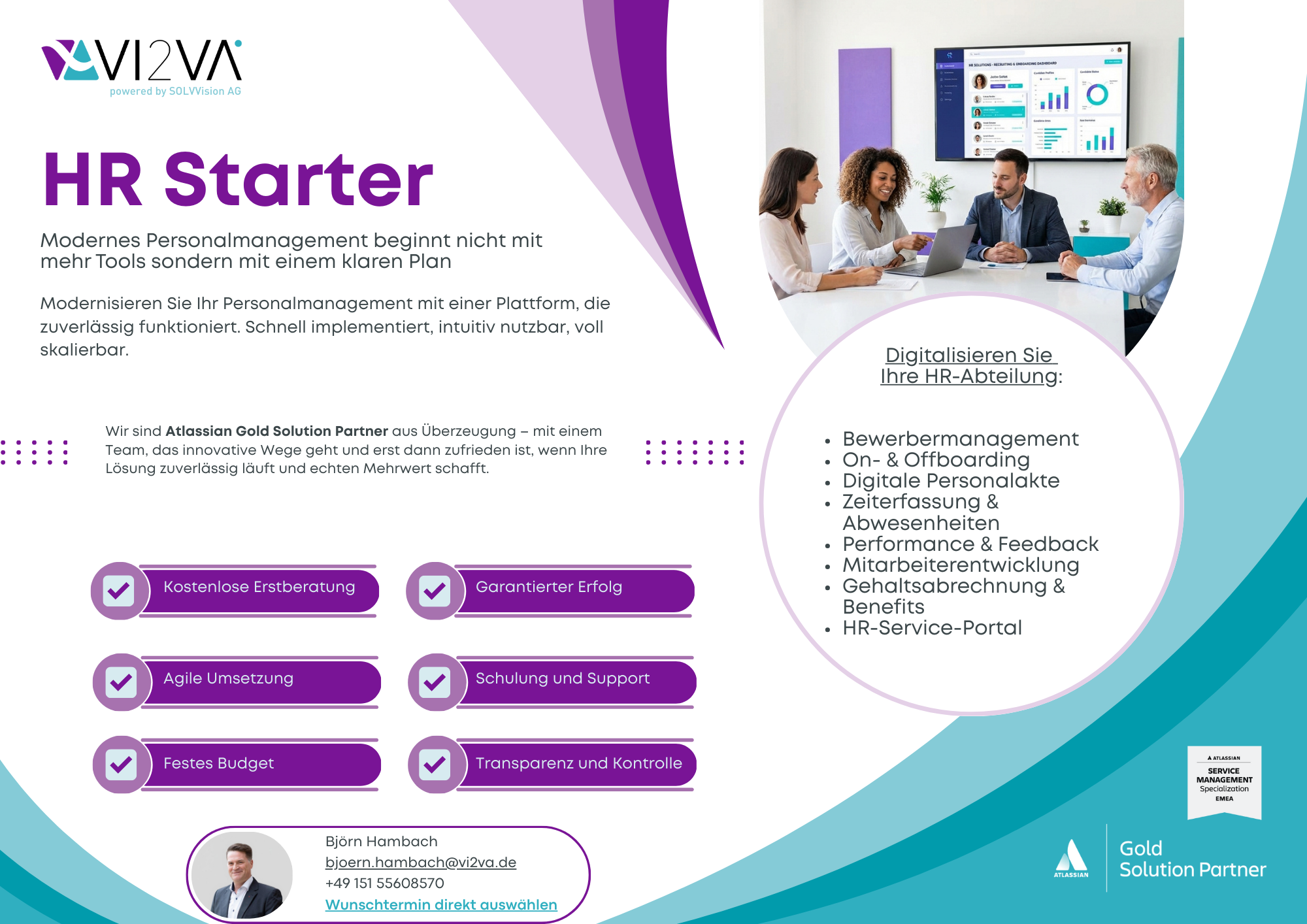 Unser Paket „HR Starter“ bietet Ihnen eine nahtlose Integration von zentralen HR-Funktionen und modernsten Tools. Das heißt: Sie profitieren von automatischen Personalprozessen und Transparenz und können fundierte Entscheidungen treffen.